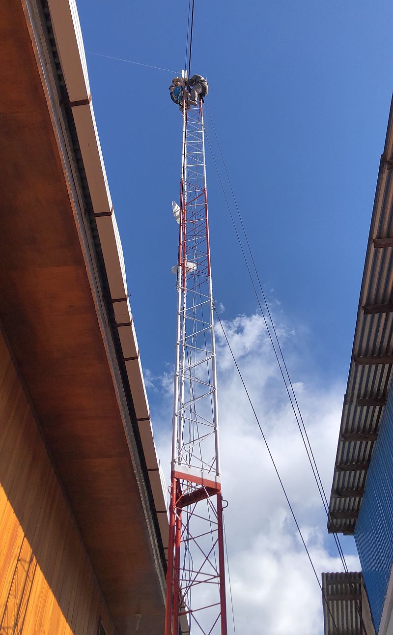 Einmal bei uns angekommen, sorgte der knapp 2-jährige, total freundliche, aber mit messerscharfen Zähnen ausgestattete Vierbeiner für viel Furore. Der anfängliche Versuch ihn anzubinden endete bereits nach rund 10 Sekunden – die nagelneue Leine war in Fetzen gerissen und der Hund in wilder Jagd auf unsere Hühner, die zum Glück hinter Gitter waren. Abhilfe schuf ein ausgeliehenes Stahlseil, das den Zähnen dann doch genug Widerstand bot.